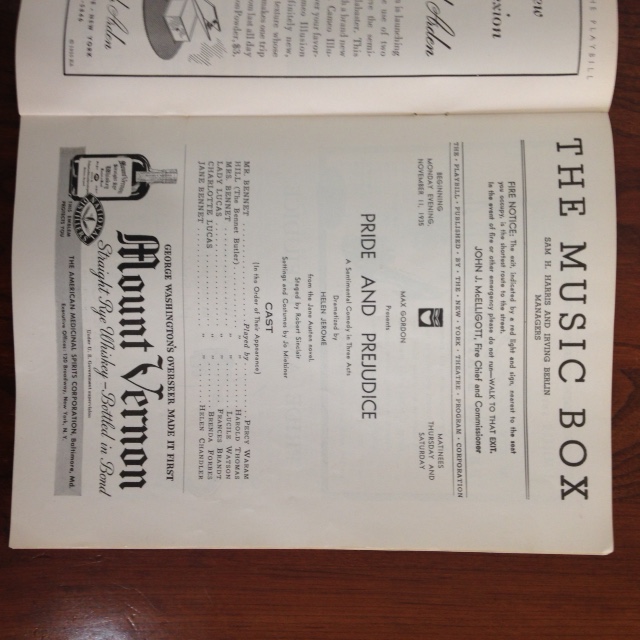 I am listing a private collection which includes 200 or so Playbills from 1935 – 1990. I will eventually add several to my Bookstore page listings, but I am happy to answer individual inquiries. If you or someone you know is a Playbill collector, please get in touch with me at belleyrebooks@bellsouth.net.