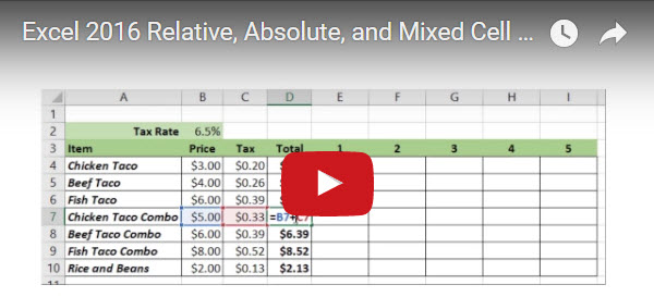 0:00 Excel 2016 Relative, Absolute, and Mixed Cell References