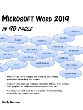 Microsoft Word 2019 In 90 Pages provides clear step-by-step instruction for your letters, flyers, and mail merge documents. And like the other In 90 Pages books, it cuts the fluff and gets right to the stuff.