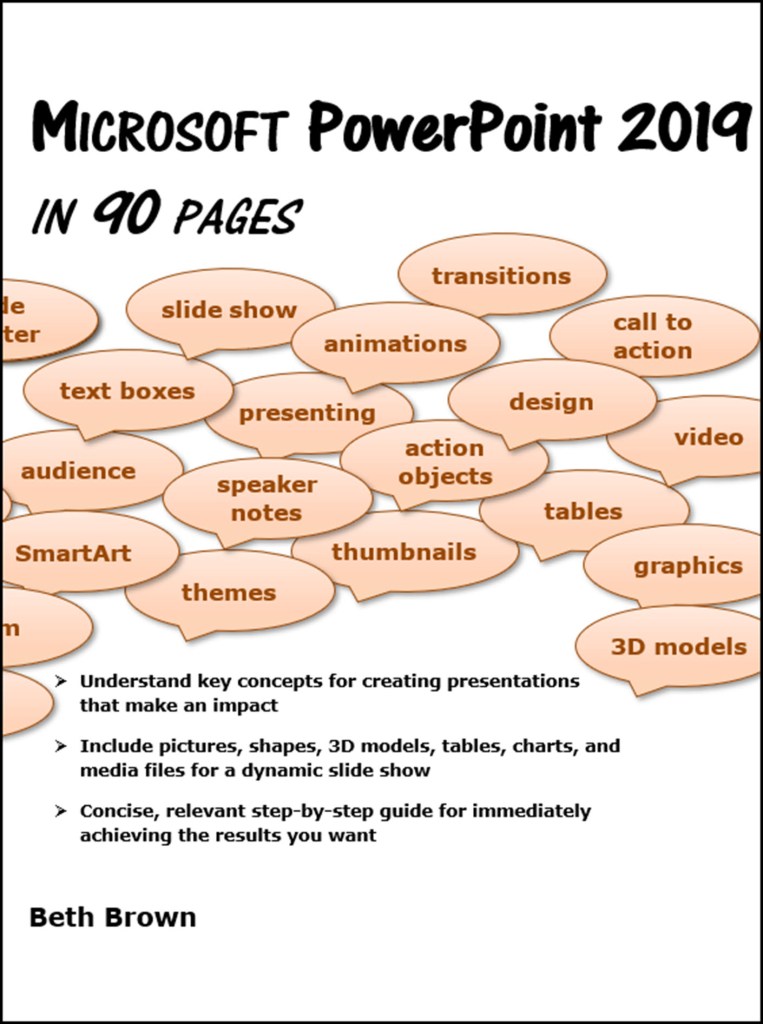 Microsoft PowerPoint 2019 In 90 Pages provides clear step-by-step instruction for your slide shows. And like the other In 90 Pages books, it cuts the fluff and gets right to the stuff.